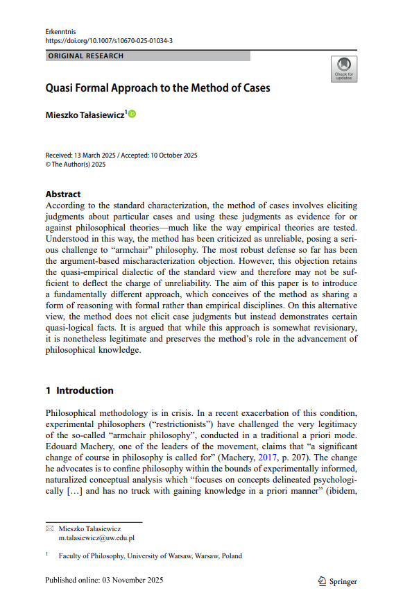 Mieszko Tałasiewicz, Quasi Formal Approach to the Method of Cases, Erkenntnis (2025), Open Access